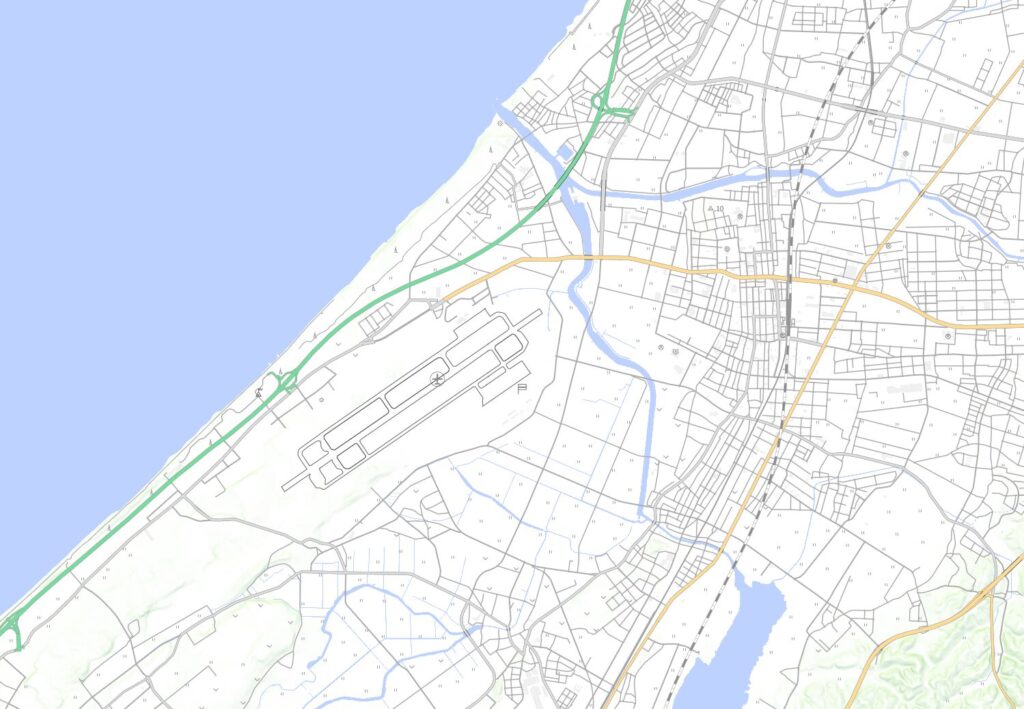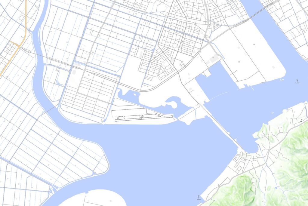 問題の地図を見て、日本国内の空港の名前を当てる クイズです。