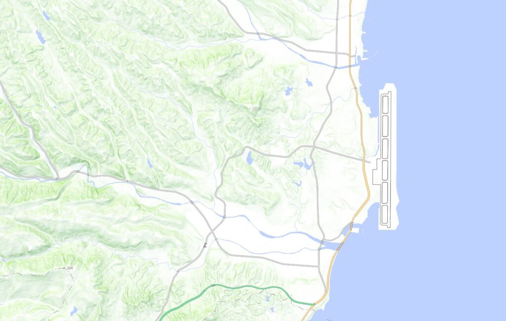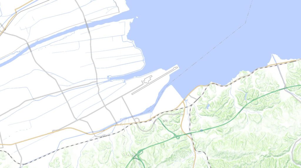 滑走路が突き出してるのは海じゃなくって「湖」だよ。