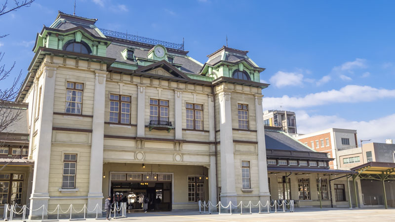 福岡県北九州市門司区にあるJR門司港駅の写真だよ。写真の門司港駅舎は大正3年に建てられたもので、重要文化財なんだって!