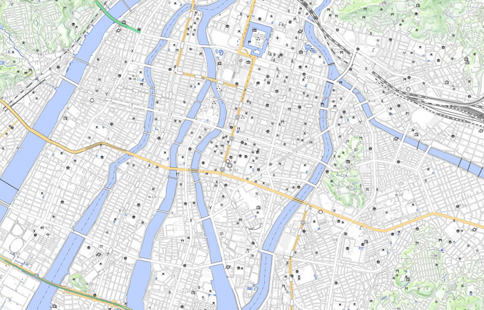 広島県の県庁所在地 広島市だね。市街地を川がたくさん流れてるのがよく分かるね。