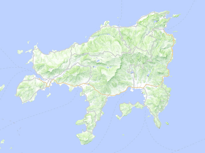 瀬戸内海に浮かぶ「小豆島(しょうどしま)」だね。香川県小豆郡の小豆島町と土庄(とのしょう)町からなる島だよ。