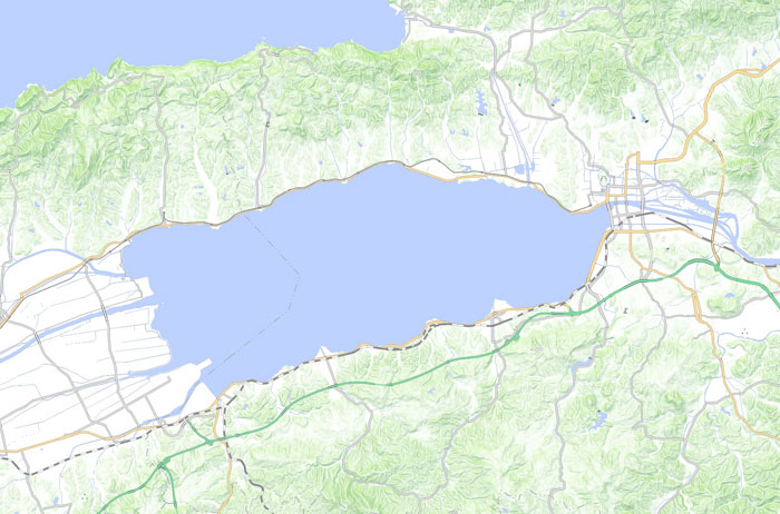日本で7番目の面積の湖「宍道湖(しんじこ)」だね。島根県の松江市と出雲市にまたがってるよ。