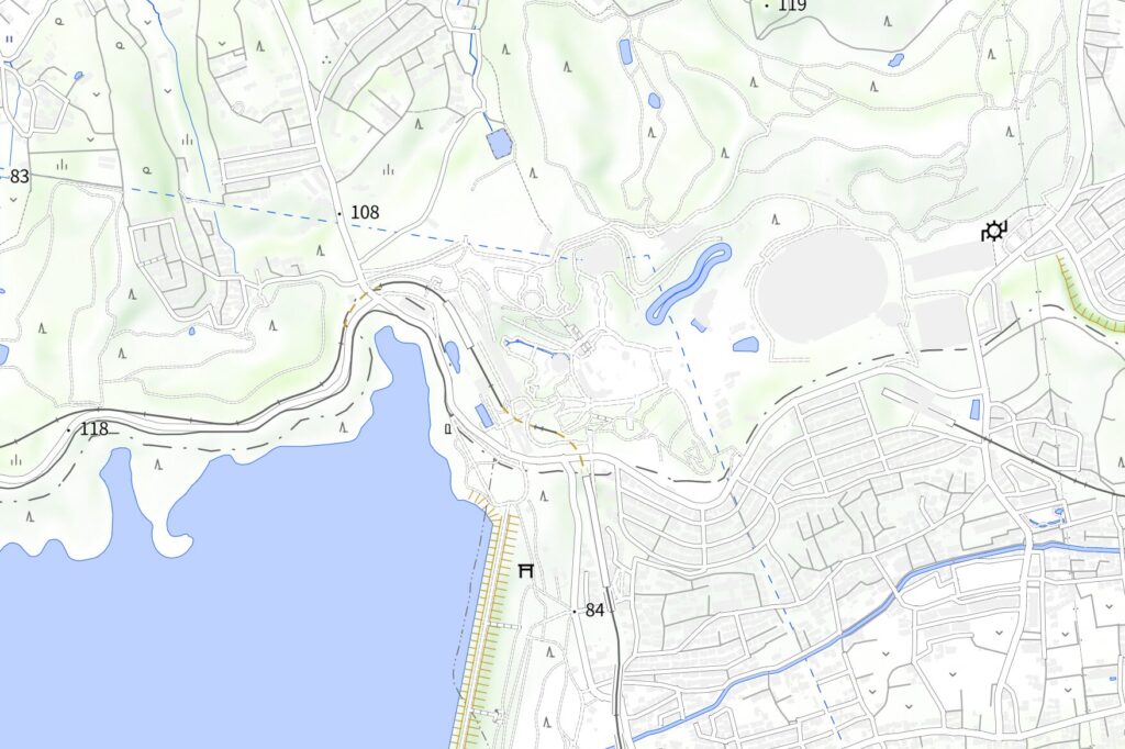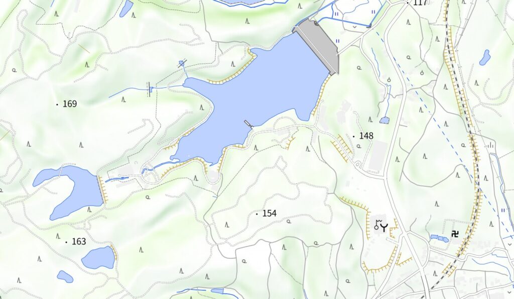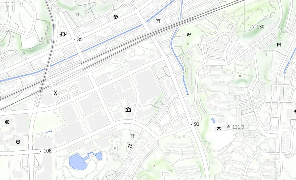 地図左下に見える水域は、「多摩湖」(村山貯水池)だね。