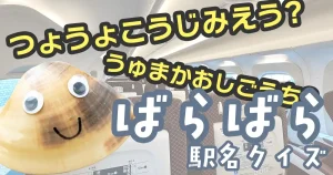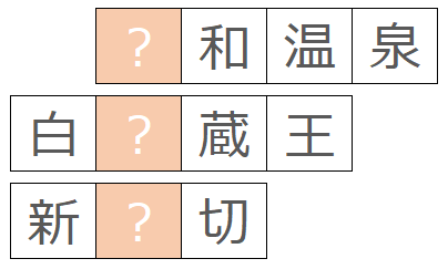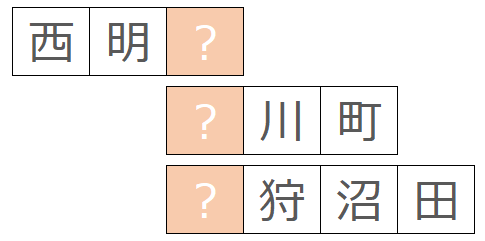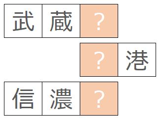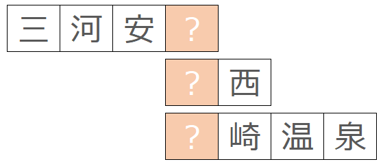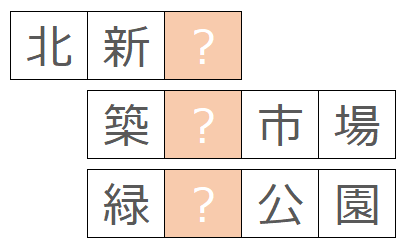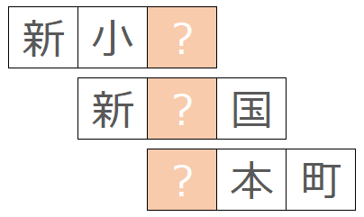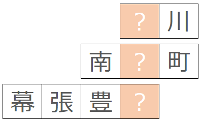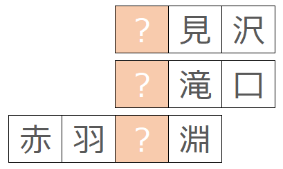 ?に共通する漢字を入れて、3つの駅名を完成させる駅名クイズです。