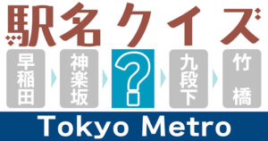鉄道の路線名と駅名が書かれた図を見て、空欄に当てはまる駅名を当てるクイズです。